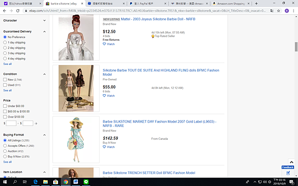 但是台灣拍賣網站賣的芭比有限 因此我逐漸往國外搜尋