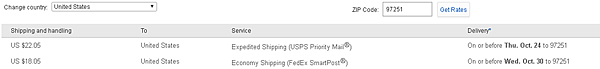 郵寄區號 97251 美金 發送速度有22或18美金