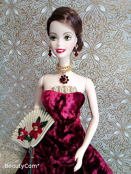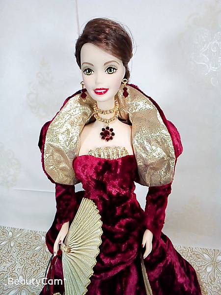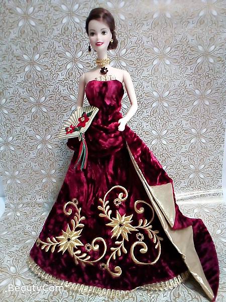 此款是1997年限量版的假日陶瓷芭比(Holiday Ball Barbie )